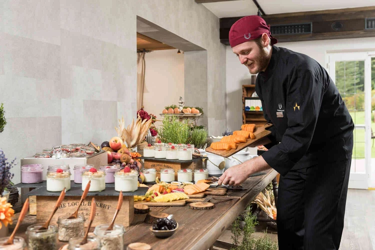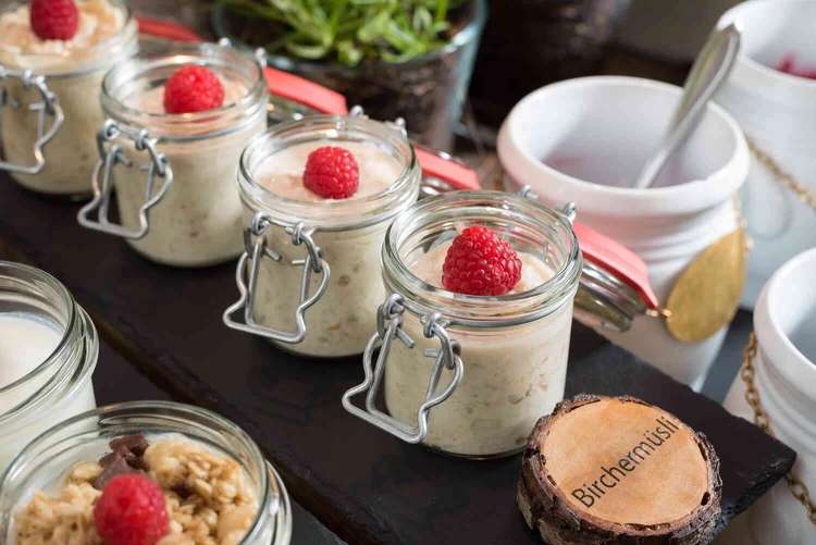Zu den Hauptmahlzeiten können Sie zwischen verschiedenen Menüs, kalten und warmen Speisen wählen. Unsere Küche ist von regionalen und saisonalen Zutaten geprägt. Alle Mahlzeiten werden vom Küchenteam frisch zubereitet. Und auch auf spezielle Essenswünsche sind wir eingestellt – egal ob vegan, gluten- oder lactosefrei.
